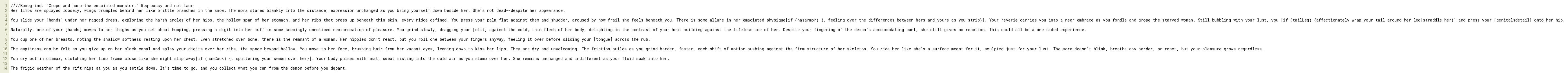 ////Bonegrind. "Grope and hump the emaciated monster." Req pussy and not taur