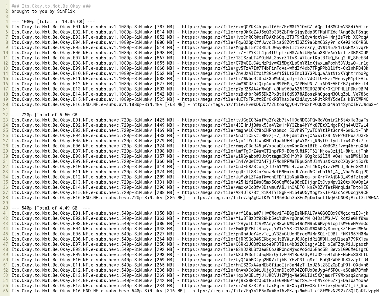 Its.Okay.to.Not.Be.Okay.E11.NF.e-subs.hevc.540p-SiN.mkv [265 MB] - https://mega.nz/file/hnIS2CxA#aNEb8fiuoIjr3aN4zT-loUZ6t2SIzOpDqP01-OXdvn0