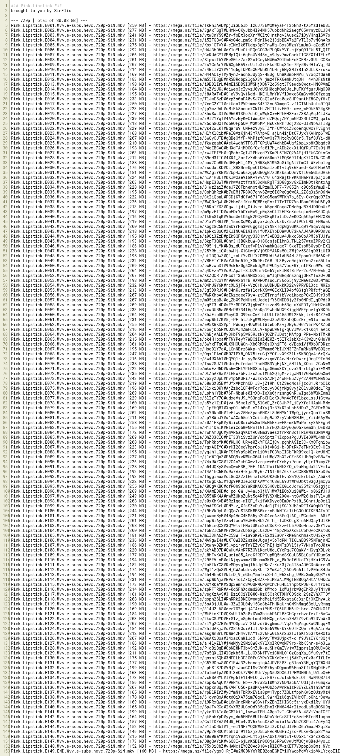 Pink.Lipstick.E112.Wvv.e-subs.hevc.720p-SiN.mkv [174 MB] - https://mega.nz/file/WgI1zQxS#LH_GWAoUdrvdyBU-T3YmXJ4_2AOb9n6lLfvP0hs34Jo